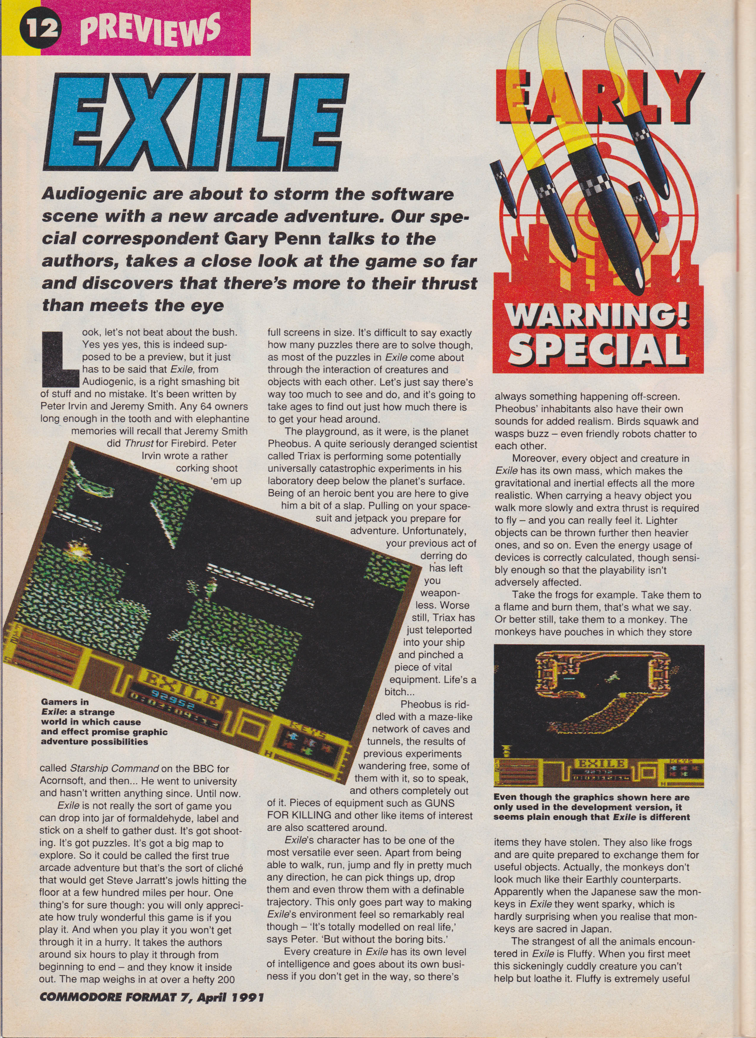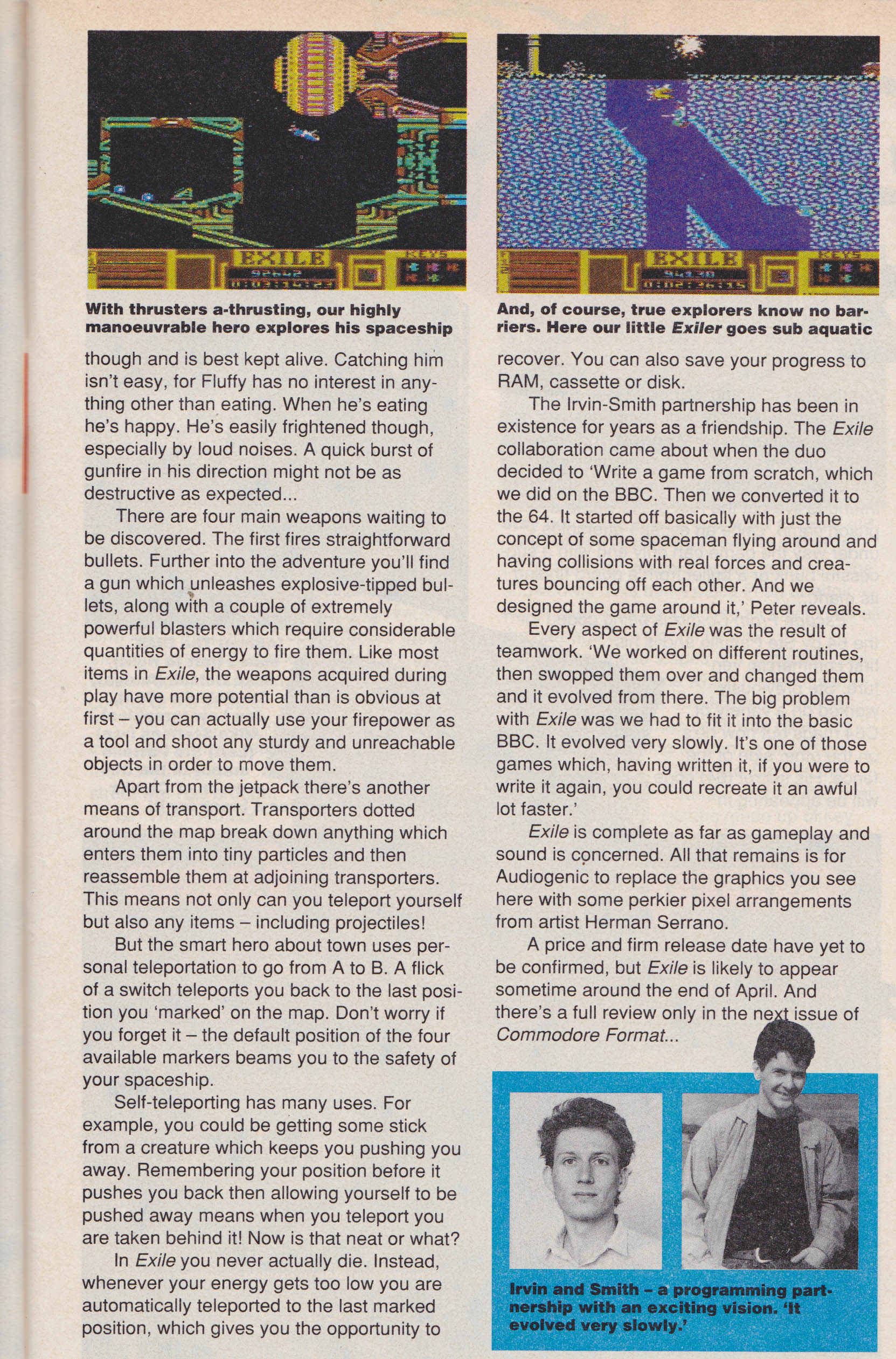 Yet more slightly different looking screenshots – this time for the C64 version of Exile, which pretty much had a different main character and panel screen in Commodore Format issue 7.