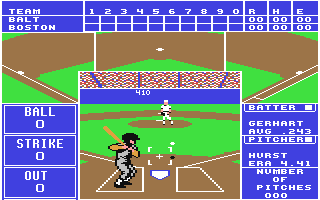 I was shown an earlier C64 baseball game that sucked. In particular it was only possible to have 9 different hits: shallow, middle and deep; left, center and right – “Don’t make it like that” was my specification.