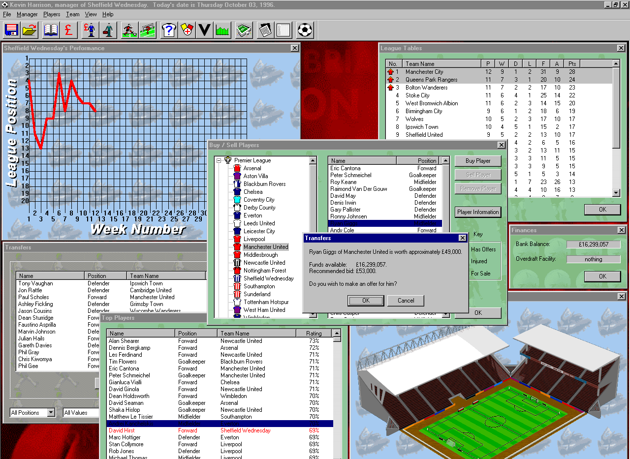Krisalis had already previously had released a title called PFA Player of the Year back in 1996, and tried to make extra use of the PFA licence by creating yet another management title called PFA Soccer Manager. This would be a management game built to run in Windows 95, making use of the codebase and interface style. However, they state that console versions were to be planned.