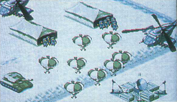 Controls were reported to be similar to Lemmings, point and click and where you control soldiers in groups or individually. You could also use the keyboard or joystick to move soldiers too. Throughout the map, there were thoughts about being able to construct buildings to help defend or attack the enemy, adding a lot of strategic elements to the game (though this was still to be decided). The map itself would scroll in eight directions as you moved around.