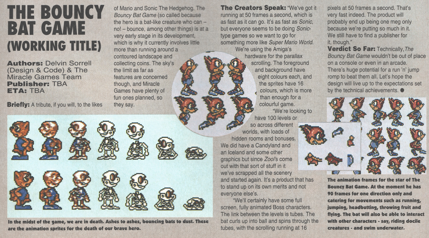 The One magazine published a news snippet on the game, where now it was being referred to as “Miracle Bat”. It was now being described as “cooler than Zool, harder than James Pond, faster than Sonic and the game is more complex than any of Mario’s adventures.”. Patricia revealed at the time that the game had been in development for around 2 years now.