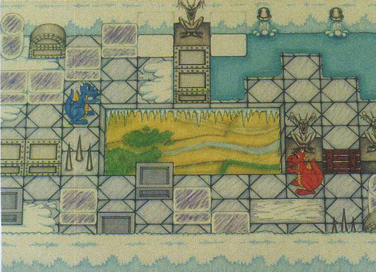 Dwagons is a game which is not too dissimilar in style to the classic Pengo, with the concept of being able to push blocks. The blocks come in various different forms, which provide tricks and traps throughout. Joystick magazine described the game as a title that combines arcade, strategy and adventure. The graphics early on looked pretty good, showcasing a 2.5D view, and blocks could stack up too, with the characters being able to jump up onto them and give an extra level of depth to the game. The two main characters if you hadn’t guessed already, are dragons – or Dwagons, as the title suggests, going by the name of Snort and Snail. The story goes that Lord Flame has kidnapped their brother Snarf, and taken the magic talisman that has protected their country of Dwagonia for centuries. The game is divided into six worlds in total (we assume made up of multiple levels), and takes you from the lands of Dwagonia, all the way to the Aztech temples, passing through jungles, mountains and an ice palace, before eventually ending up at the home of Lord Flame for one final battle. Each level (or “table” as Joystick suggests) is represented as a static screen, where you must solve puzzles and find the appropriate strategies to be able to move onto the next. Each room consists of a series of blocks with different functions. The characters can use objects such as boats to cross areas of water, and metal boats for lava. There are levers and push buttons which can be used to open up areas and platforms to allow you to move around cut off areas. There are also teleportation blocks and stairs that allow you to move around and change floors in the game. Some tiles could be trapped, and make your player fall to a floor further below. Enemies come in various shapes and sizes, with ice creatures throwing snowballs and some guardians trying to push you into the lava for example. Features within the game would include magic spells, sticky floors, enemy generators and more to liven up each of the rooms in the game. Fire rooms are dangerous, and mushrooms can grow within mud and fill up the entire room, making it hard to maneuver. Although mentioned in various magazines in news snippets, and with a larger feature in Joystick magazine, the game was never to surface and little else is known at present. Why was it cancelled, and how far did it get? Could anything of it be saved? If you know anything more about this title – please do get in touch. With thanks to Karl Kuras for the heads up, Abandonware Magazines for some of the scans and Archive.org for some of the scans.
