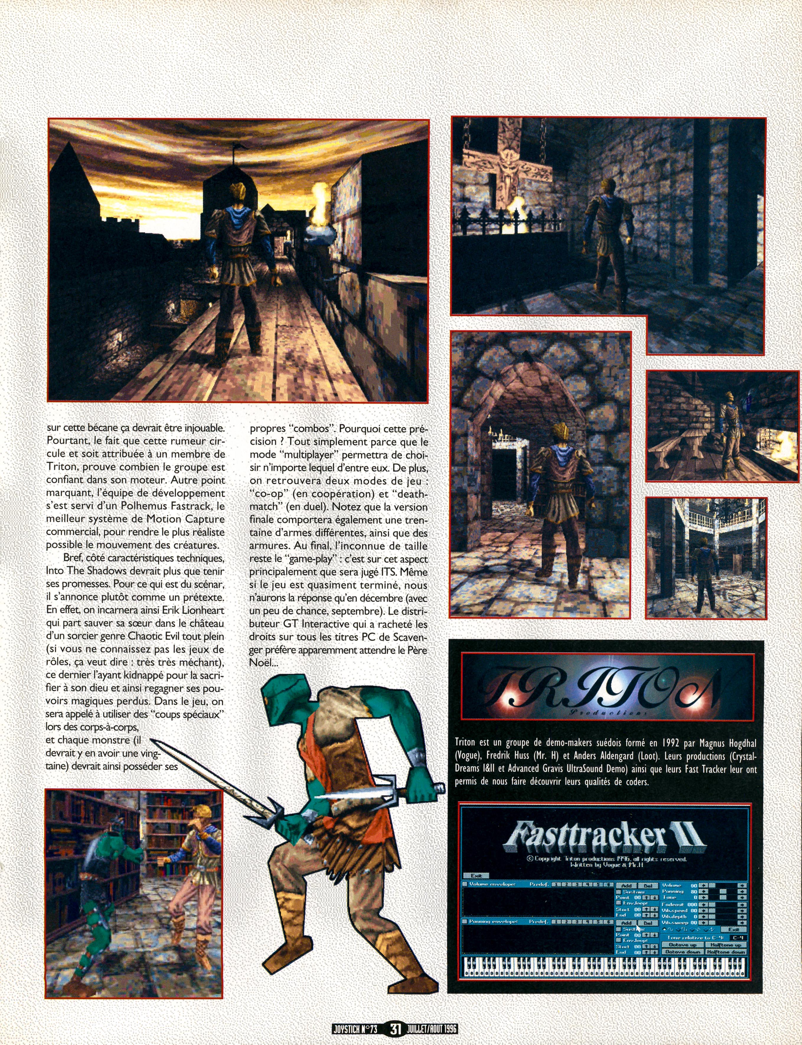 Into the Shadows (ITS) was a 3D fighting game, originally scheduled for release in 1995, and was being programmed by Magnus Högdahl and Fredrik Huss, with graphics by Mikko Tähtinen and music by Magnus Högdahl.