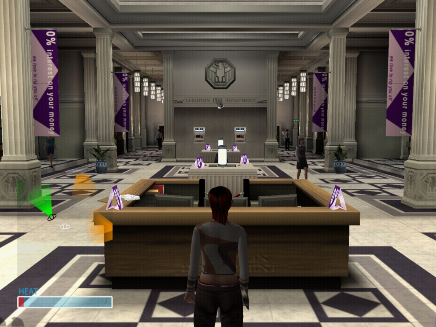 You would be confronted by security guards, police, SWAT teams – all via a 3rd person viewpoint where you can dive over desks, take cover behind objects to avoid gun fire, before unleashing your own and taking out people along the way.