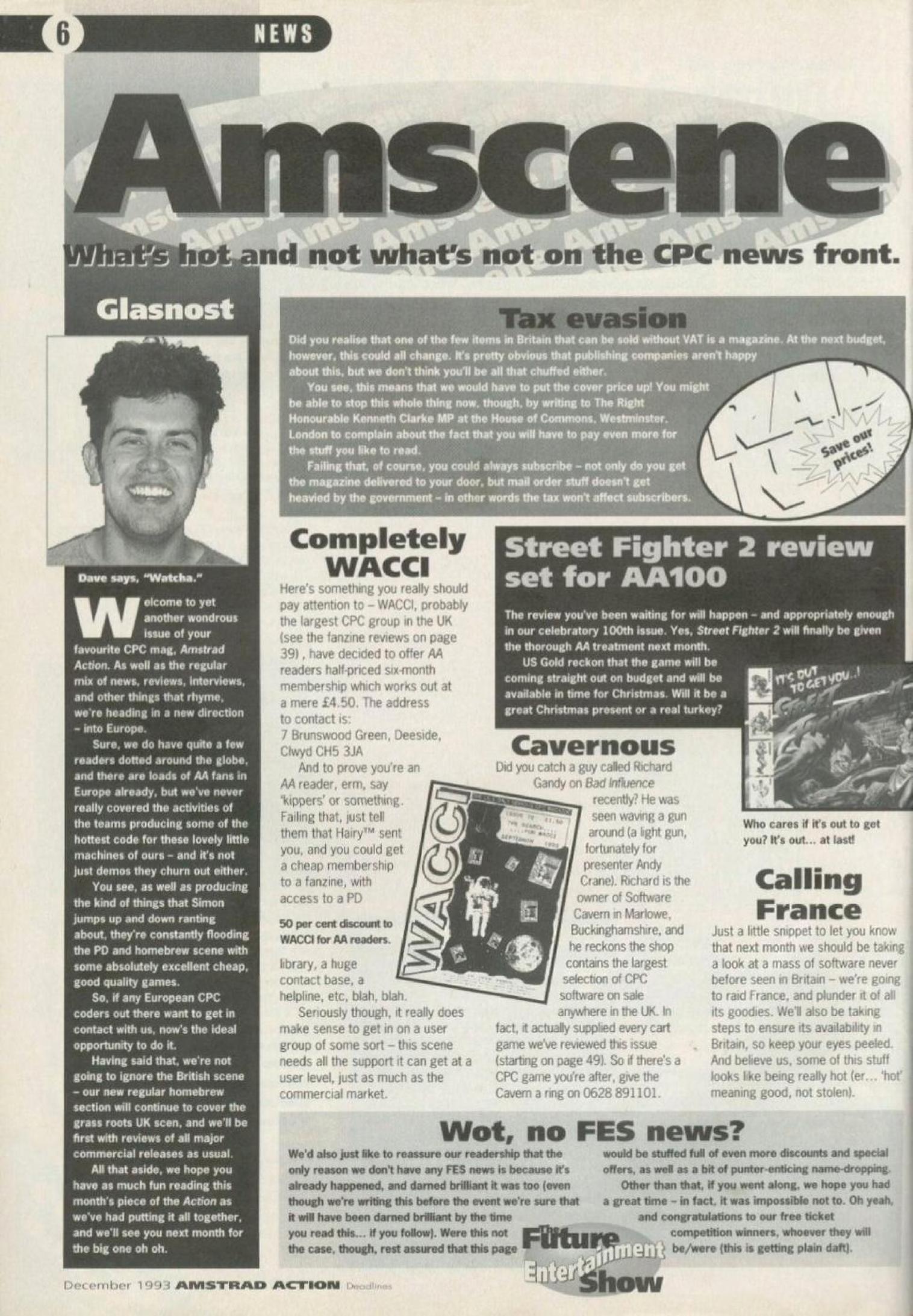 By December 1993, the magazine finally heard something new and had a news item suggesting that a Street Fighter 2 review was now due for issue 100 of the magazine. Reportedly, U.S. Gold had told Amstrad Action that the game was coming straight out on their budget label in time for Christmas. Had this been made up just to fill up space in the magazine desperate for content?