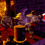 “But despite the setbacks [with Fuzzball], Dahlgren doesn’t give in, [instead] he does the graphics for a game he calls Seven gates of hell, later renamed into Axe ‘n Crossbow. He’s inspired by [the arcade game] Indiana Jones and the Temple of Doom (Atari, 1985) and the graphics are impressive even today, but [the game] is soon canned. He is offered to sell his graphics, but Tomas, now wizened, refuses.”