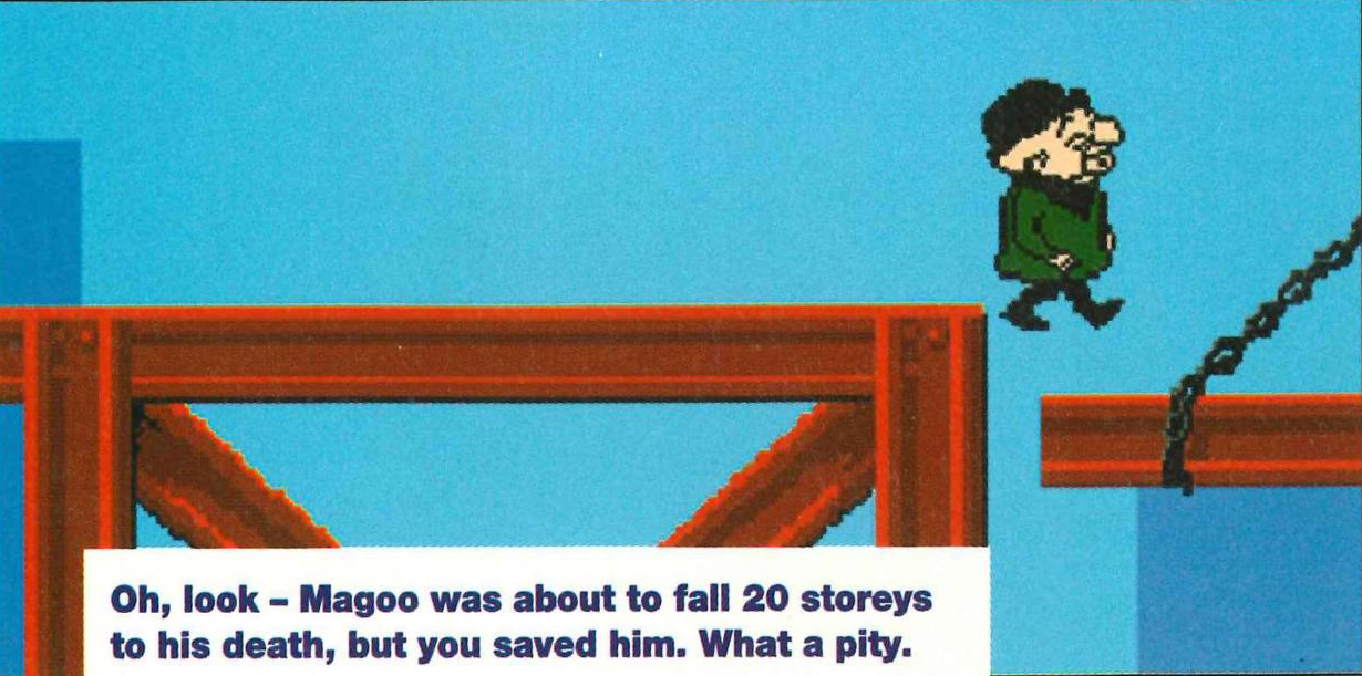 “‘You don’t actually control Magoo, but the objects and scenery around him,’ explains Mike. ‘The problem here is that you’ve actually got to get Magoo to accomplish a task, but you can’t really use him, so you’ve got to get something else to make Magoo complete the puzzle, indirectly, as it were.’