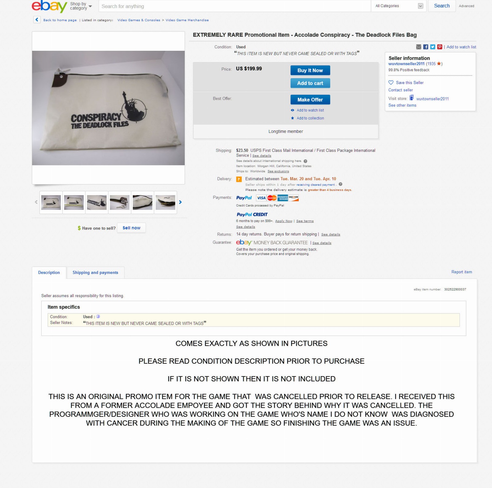 That was the blurb from advertising for a lost title called Conspiracy: The Deadlock Files (no relation to the Deadlock strategy games released years later by Accolade), a title which was an early VGA adventure game from Accolade, which claimed to be the first “fully digitised adventure game with 256 colour video graphics”.