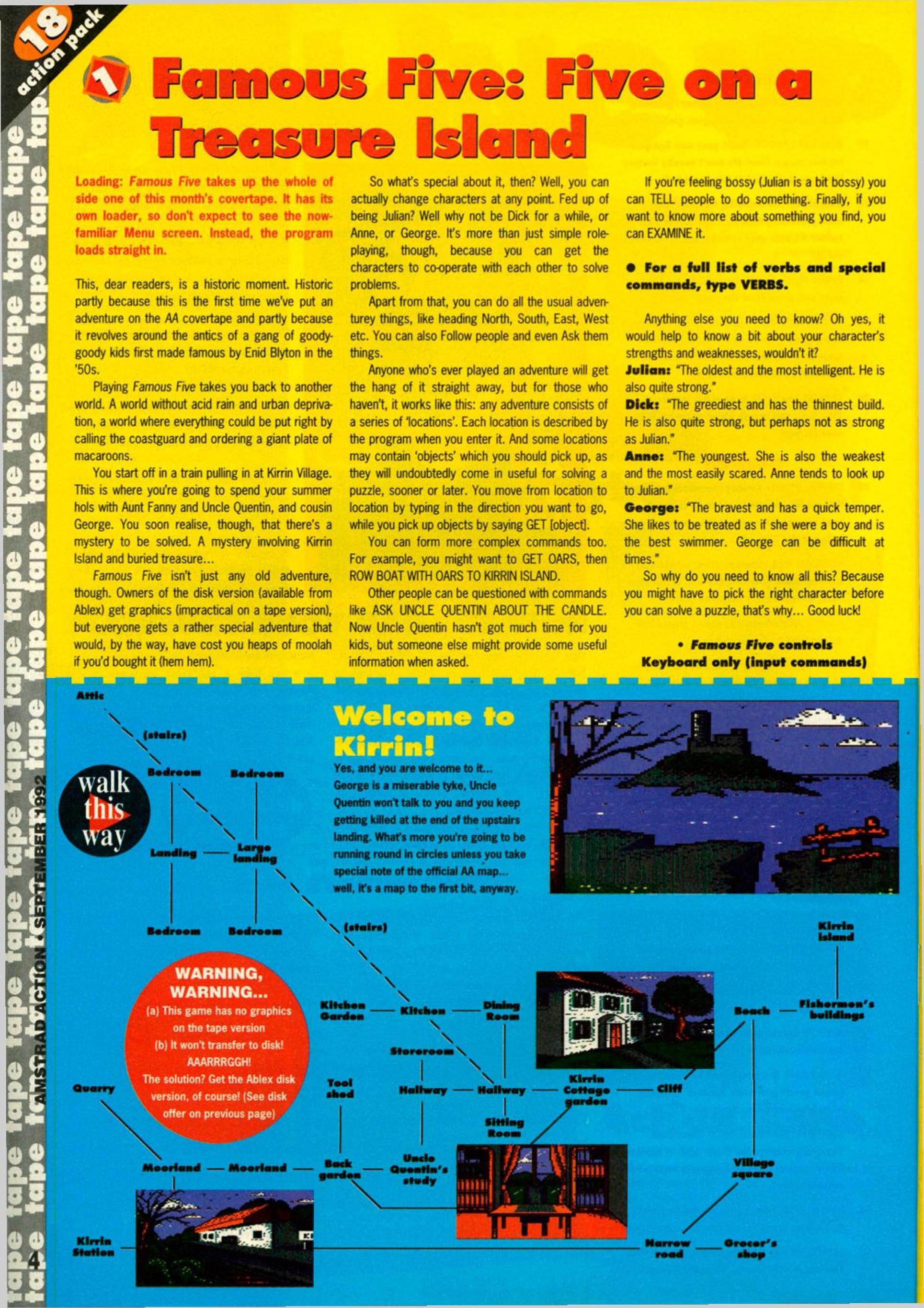 There were two editions of the game released – a text only version on tape (although a 128k version with graphics built in could have been done – it was with the 128k Spectrums) and a bugged disc edition with graphics (Amstrad Action even mentioned these bugs in their cover tape pages but I’m surprised no-one called them out on it).