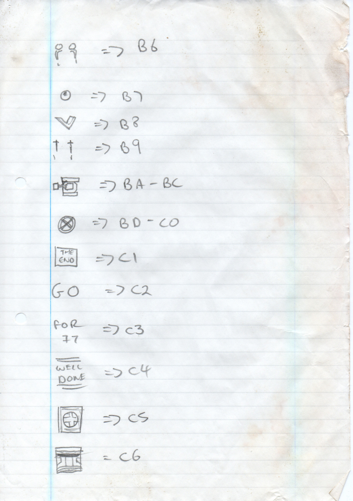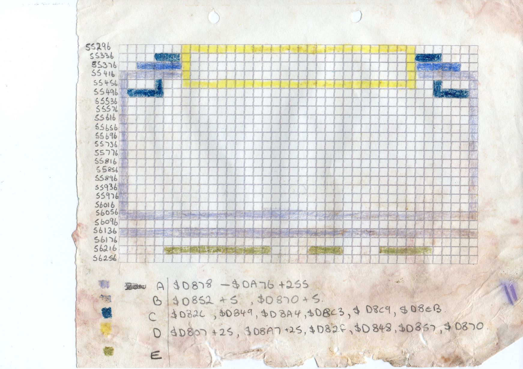 I also found a colour map reference sheet for the front screen in the game. I think this was related to the raster effects on the font… so I could work out which cell was supposed to be which colour. Or something like that.”