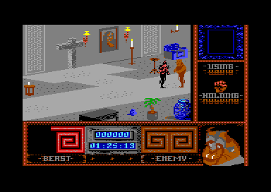 The game seems to be borrowing rather heavily from Last Ninja 3 and replaces some of the maps with a few tweaks, the main ninja with a brown beast and keep the same LN3 characters as the enemies, what we have is Beauty And The Beast.