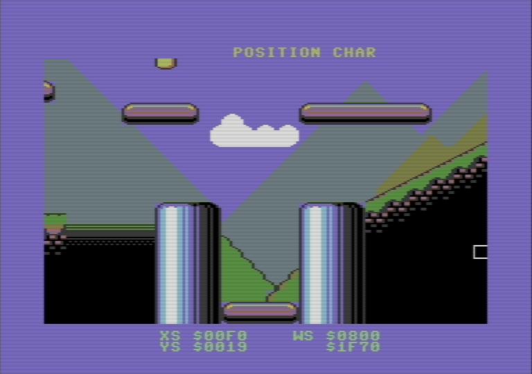 Over the weeks/months the game was in production, title screen, high score and disk loaders were complete. Music was produced by Joachim Wijnhoven as well. A traditional method of scrolling was chosen over VSP, and speed was achieved by using self modifying code. This was ditched and a $d011 scroll was used instead, where multi-directional scrolling was now possible.
