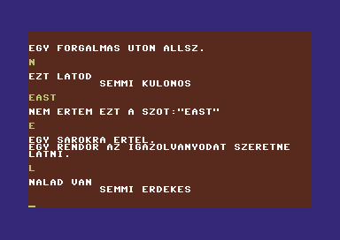 “This was (as far as I can remember) my second game, written after Kisértetkastély. The version on Plus/4 World is probably not the original, as evidenced by the C64 POKEs in line 5. I definitely wrote this on a C16, back in 1985. I think I had one or two more adventure games which I barely remember and have not found anywhere else.”