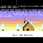 However – lurking on the same disk was a file called “XMAS”, which also didn’t autorun when loading. Putting the same SYS code in, we were greeted by the Christmas demo which was mentioned, with the message that had to be decoded to become a beta tester.