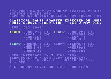 I remember first seeing Grubz about 10 years ago and being completely blown away. At last here was a fully fledged Worms clone on the C64 and looking every bit as good as the Amiga original.