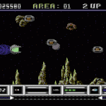 This is a blatant R-Type clone, featuring almost identical backdrops and power-ups, right down to the bolt-on/send-ahead drone that does your dirty work for you (or at least some of it).