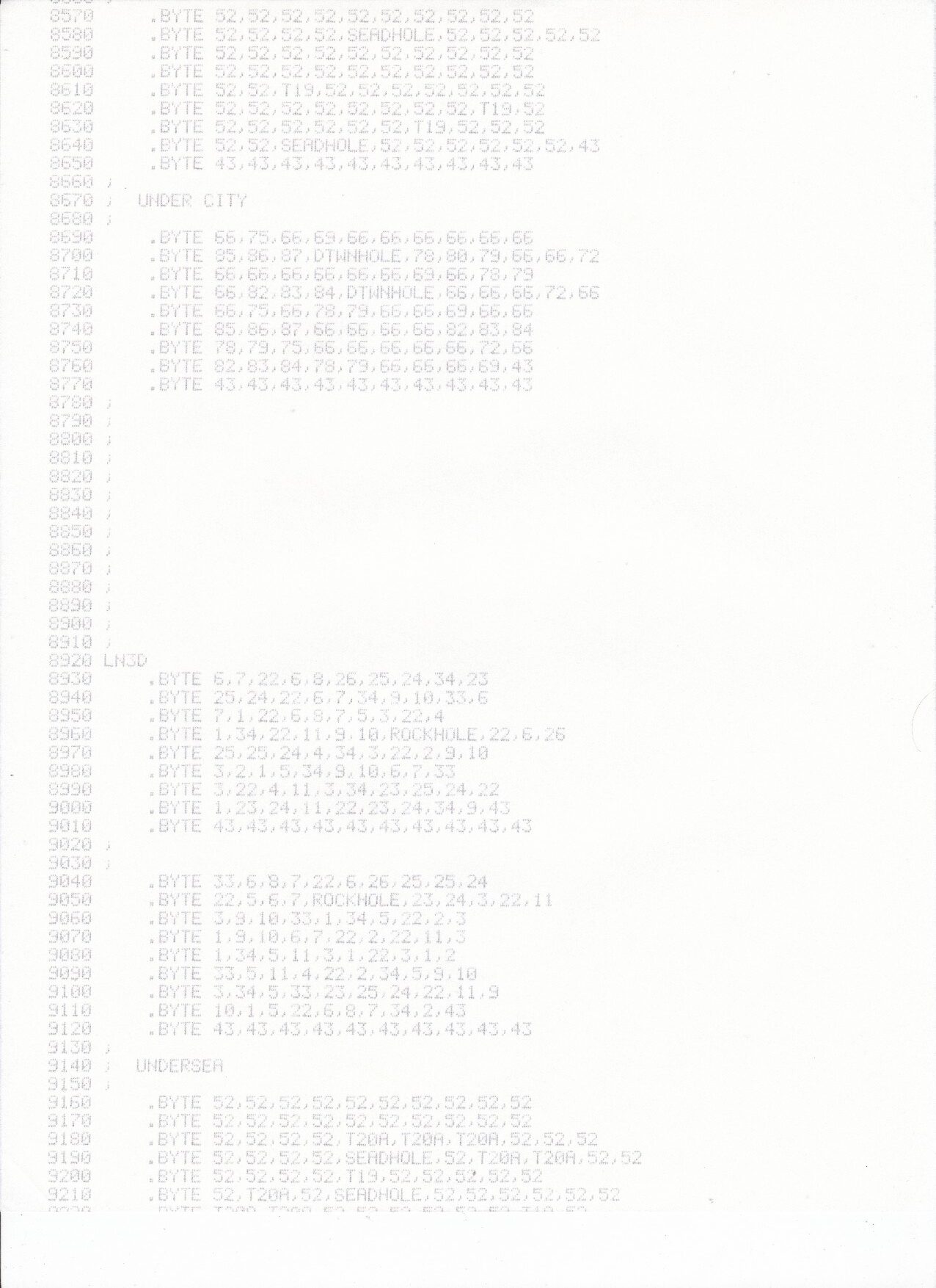 In the meantime, Sean also sent over a ton of printed materials related to the development, including maps and character set definitions. We have scanned all of these in and you can find them below. Fingers crossed some day we’ll be able to fully recover Sean’s work.