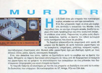 Amiga/ST lead versions were written and designed by Grant Harrison and Jason Kingsley of Kingsley Harrison – a short-lived collaboration which pretty much only lasted for this one project. A shame, as Murder seemed to show a lot of promise for the partnership.