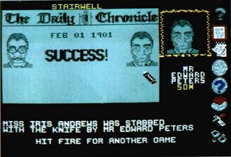 Robin Hogg: “Murder doesn’t look all that hot at first glance and the idea of taking your time analysing evidence, cross-questioning suspects and wandering around many a similar mansion isn’t one to set the gaming world alright. Amazingly through, the game is incredibly addictive, the piecing together of information becoming an engrossing task (akin to the best of puzzle games). What is really clever is the way the skill levels expand the game challenge immensely. Choose a higher skill level and suspects know more information (be it relevant or merely red herrings), more events happen to disguise the crucial time of the murder and suspected murder weapons tend to get moved around more. On novice level it’s a nice and gentle trail to follow but come the likes of an average/experienced skill level and beyond and you’ve really got to be on the ball (even Sherlock Holmes may have detective difficulties at Supersleuth level!). Addictive and highly original, Murder is a great game to while away the hours with.”