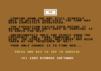 This text adventure was made available to the public at a very cheap price of £2.99, where you must go on a daring expedition to find the Mask of QA, the Sun God.
