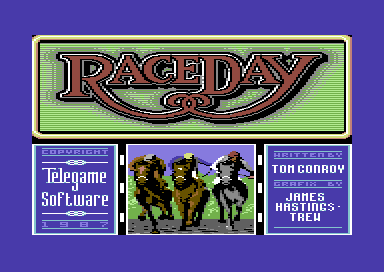 James had produced a loading screen for a title called Raceday, which was due out in 1987 by Telegame Software. The game itself was created (and assumed programmed) by a Tom Conroy.