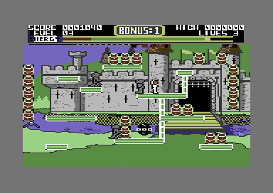 So, here is Rooster Booster! What eventually became Bombo – and featuring a main character who seems to be a human/chicken hybrid. The title screen has the different name. The background seem to be the same, though some enemy sprites are different too. There might be minor differences in power ups and game play – if you spot anything that we’ve missed, please let us know.