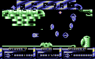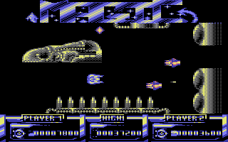 Our next entries here in the archive is a bit of a hacked job called Shadow Force, which seems to borrow assets from a number of games such as Into Oblivion, Armalyte and Shadow Skimmer and created by someone called Happy Hacker.