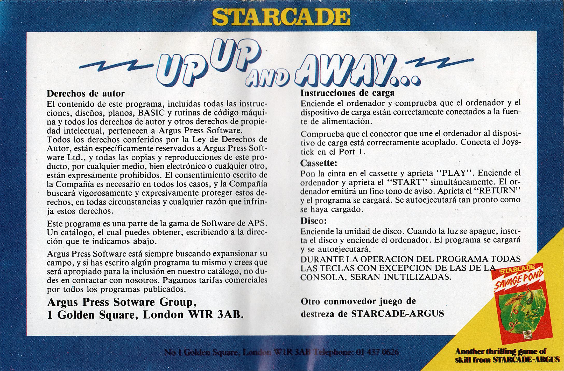 Starcade, also released Savage Pond. they were at that time linked with Argus Press, but not owned by them. Therefore ‘Up Up and Away’ has always been owned by Starcade. When Argus Press was bought around 1986, it was renamed Grandslam by the new owners.