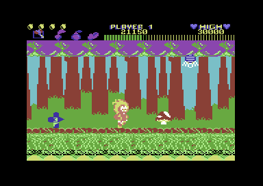 Some years ago I was talking on the Lemon 64 of a strange recollection of a rather different looking version of the C64 Wonderboy. I had the budget edition of the game, which I played to death – but also later picked up the game on a Beau Jolly 30 pack of games. The recollection was of a rather expanded looking main sprite (where as the version I originally played had two sprites bolted together).